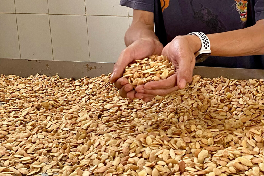 次の種の部分を取り出し、殻を破り核を取り出します。