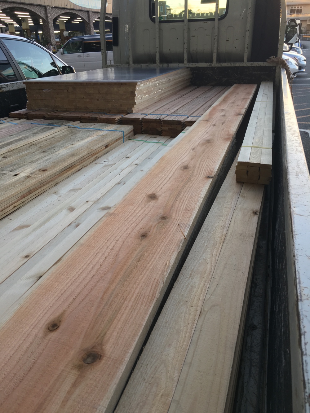 レンタカーを借りてまずは材木の買い出しです。かなりの量を購入したのですが、地元は材木の産地でもあり市場に出ないようなB級の材木も利用出来ます。